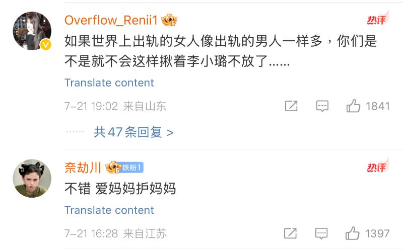 有網友留言路演表示:「媽媽是世界上最神聖的詞」甜馨也回覆表示:「我同意」