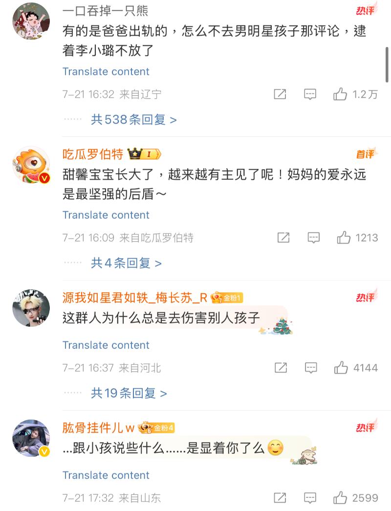 評論區網友紛紛留言斥責黑粉,認為在孩子的評論區攻擊李小璐十分沒品👇