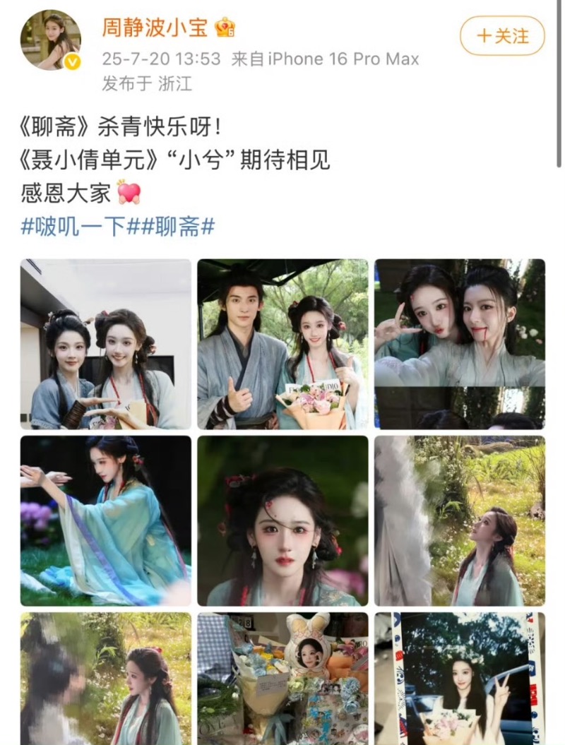 不過沒想到日前電視劇殺青,其中一個女配角的殺青帖文,卻意外引起了關注,她就是在劇中有份參演的周靜波👇