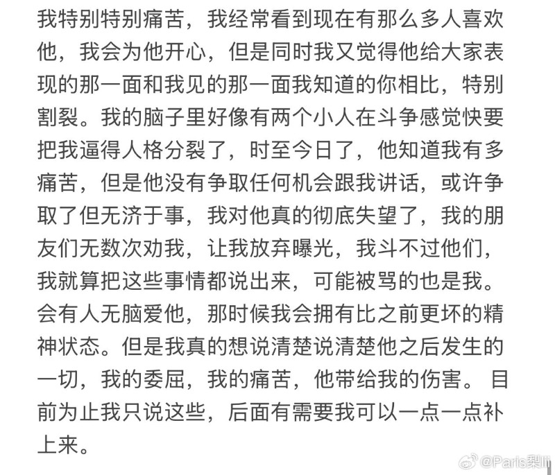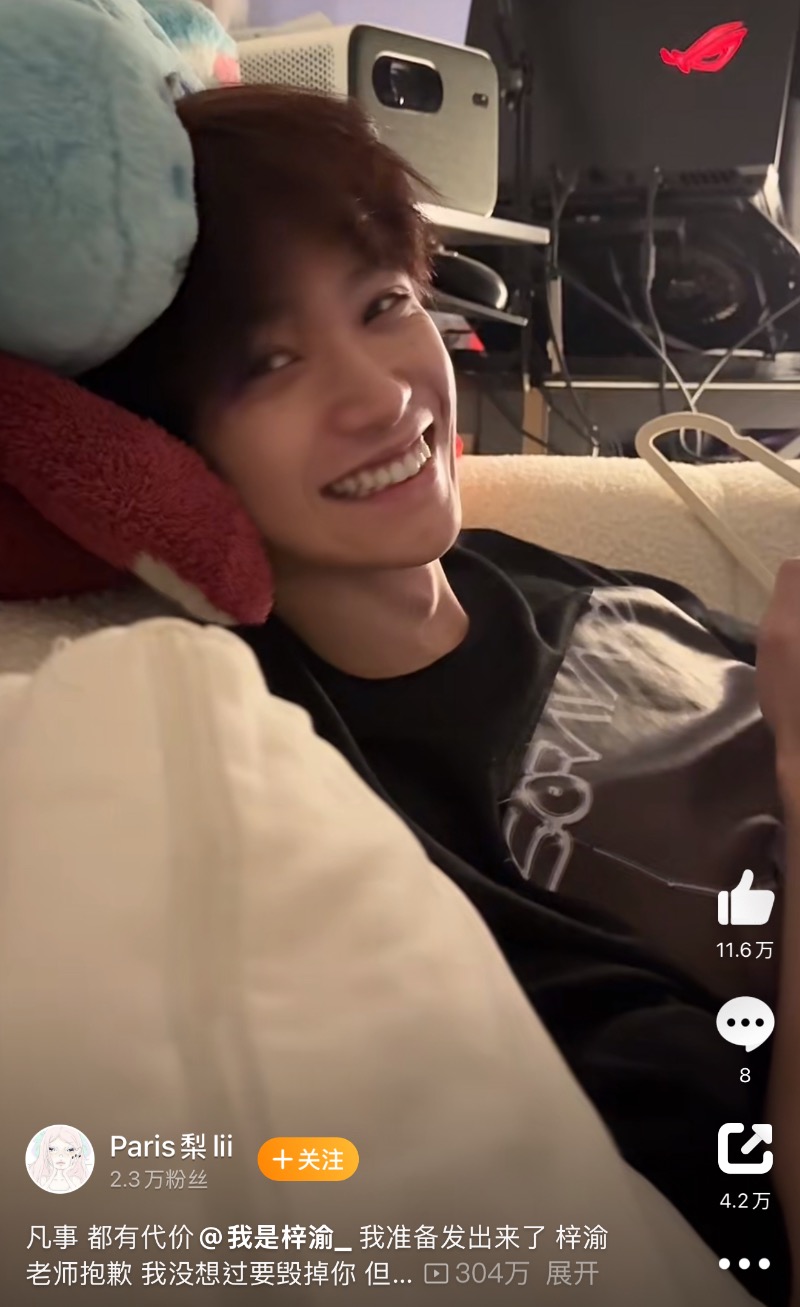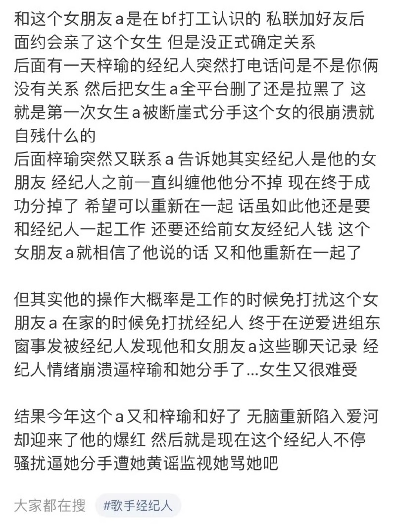 沒想到23號深夜,一名自稱是梓渝女友的網友發長文,公開了自己和梓渝的戀情,並曝出自己被小三,還有梓渝的前女友是他的經紀人等炸裂消息!