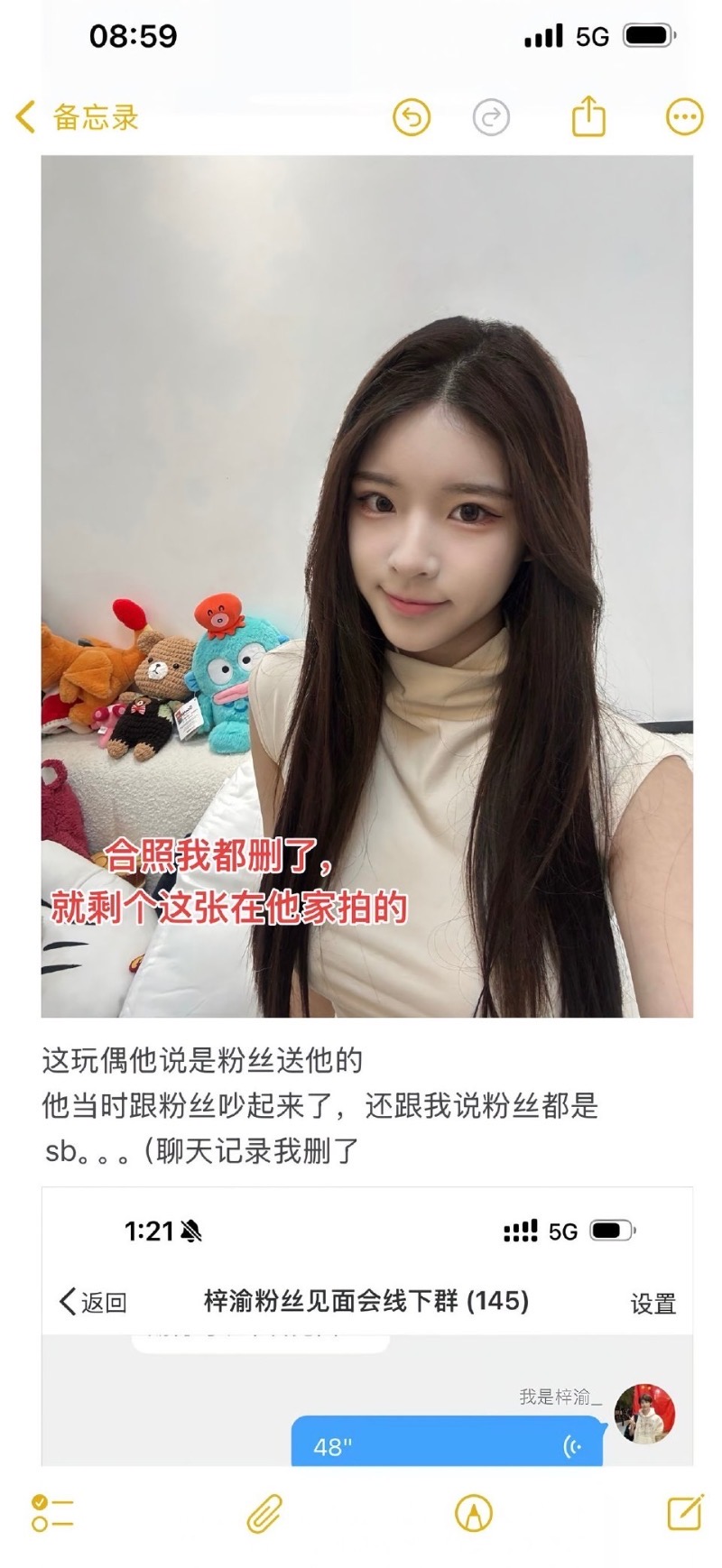自己在梓渝家拍的照片,還提到了他把粉絲叫SB(傻逼)👇