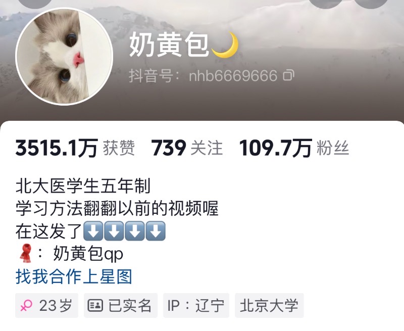 沒想到這還沒平息,又來了個新嫂子!是達,在抖音擁有百萬粉絲的網紅「奶黃包」發文錘梓渝出軌還睡自己的朋友!這裡先科普一下,這位網紅是北大醫學生,粉絲十分多👇
