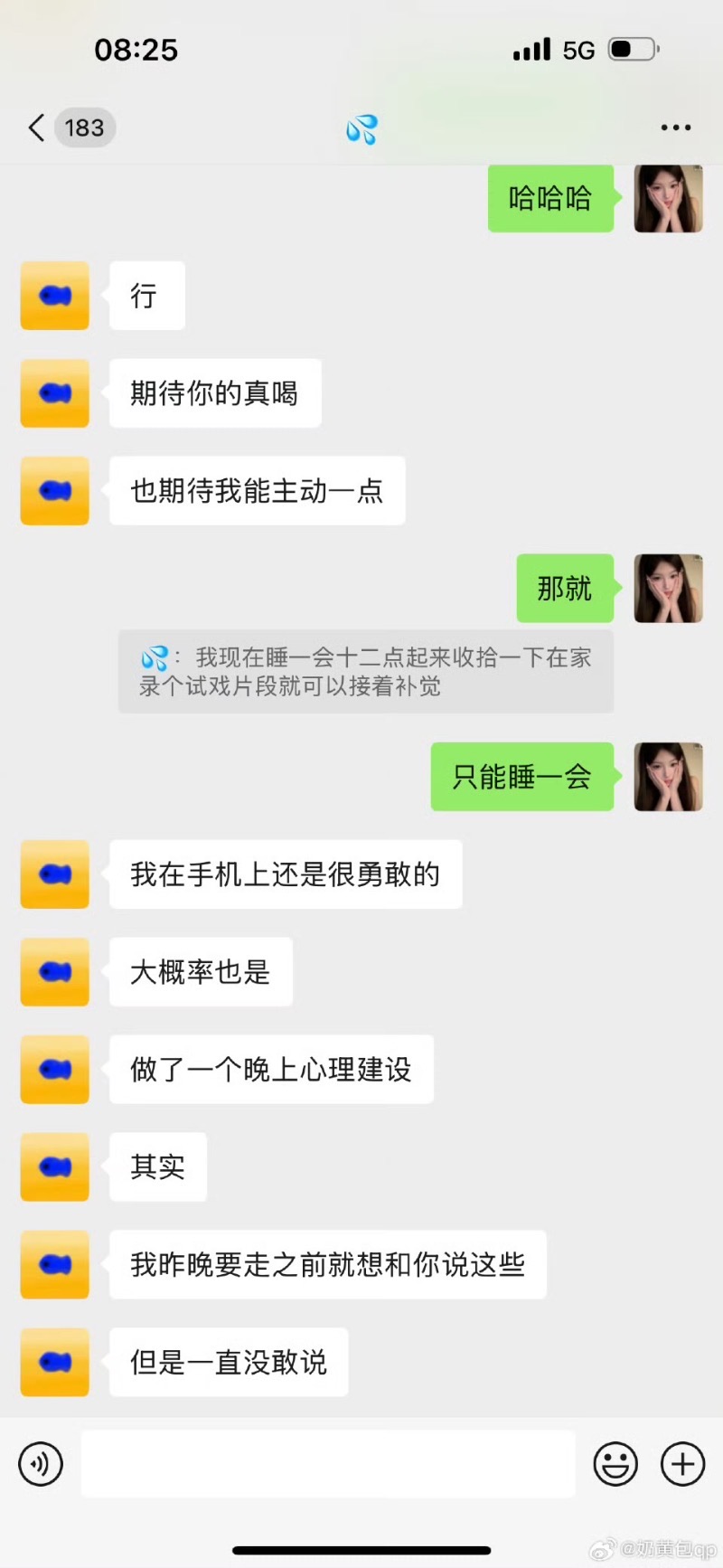 她公開了自己和梓渝認識交往的過程,包括梓渝主動和自己聊天的對話👇