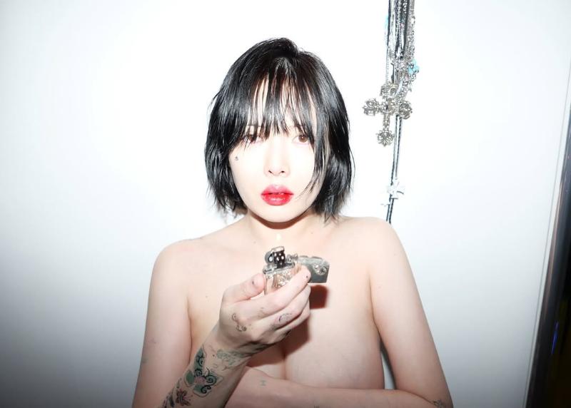 是噠,先來看看,泫雅更新的這則INS,直接曬了4張照片,一邊手拿著打火機,另一邊手澤用來擋住重要部位,傲人胸圍可以說一覽無遺!