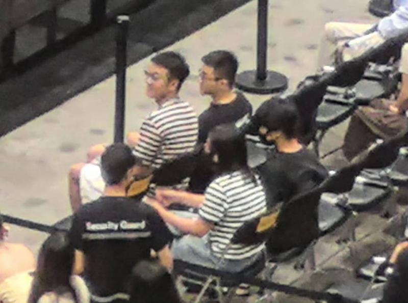 兩人坐在全場第二排的位子,王一通手上還拿了兩瓶飲料,看起來就和普通情侶沒有兩樣。