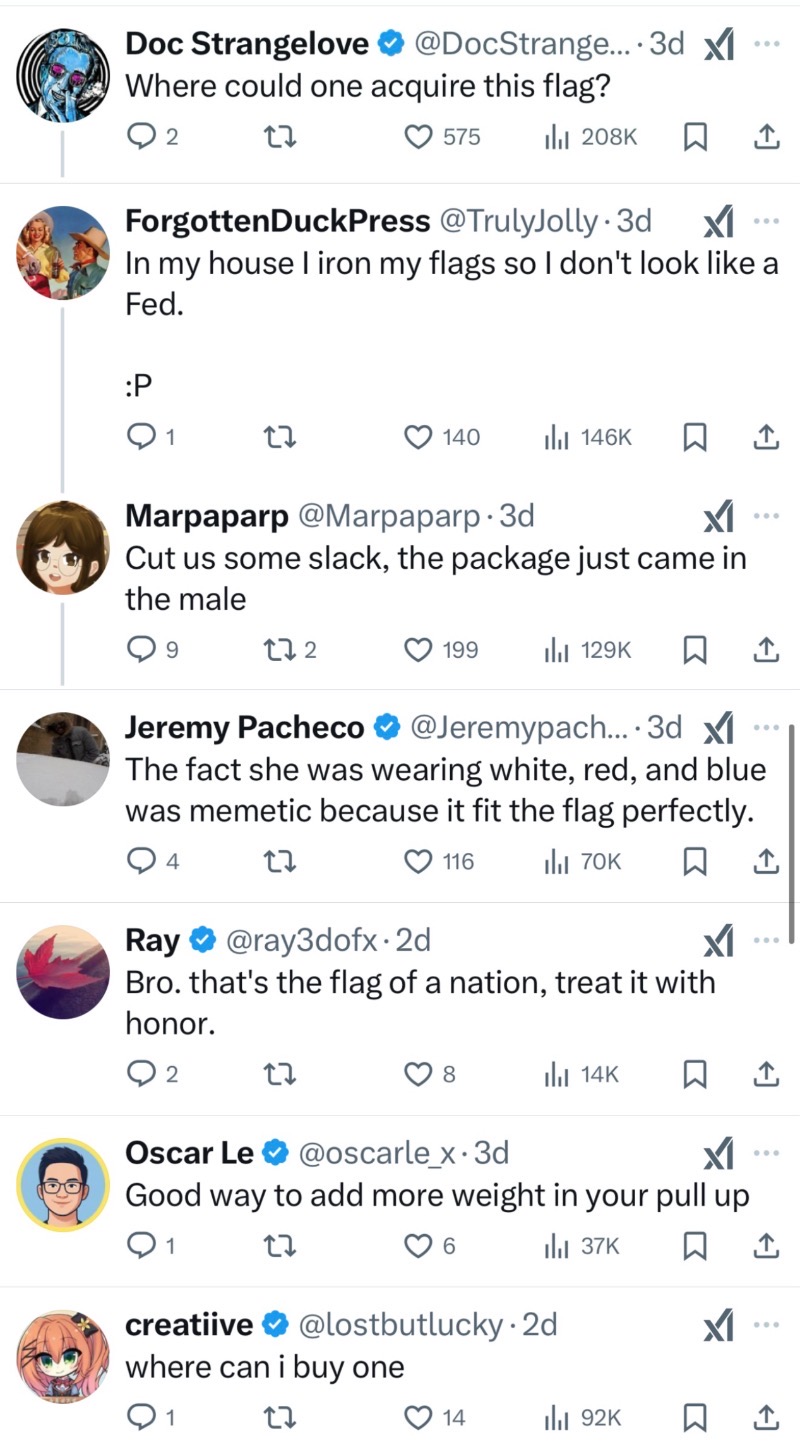 帖文下的熱評,絕大部分都是在調侃,也有認為對國旗不敬👇
