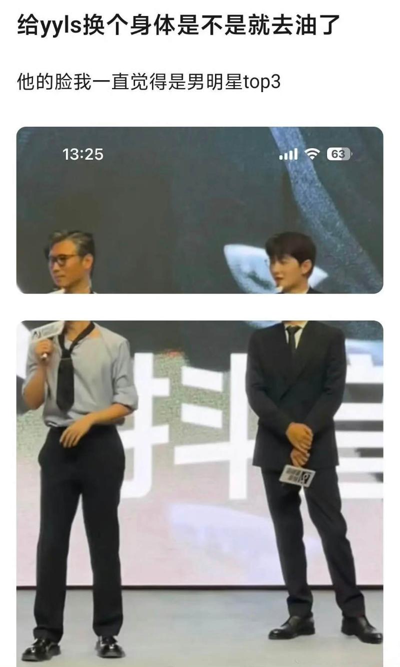 雖然但是,也有網友認為是造型師的鍋,畢竟來看看,楊洋換了套造型,比例明明就很好了啊!!