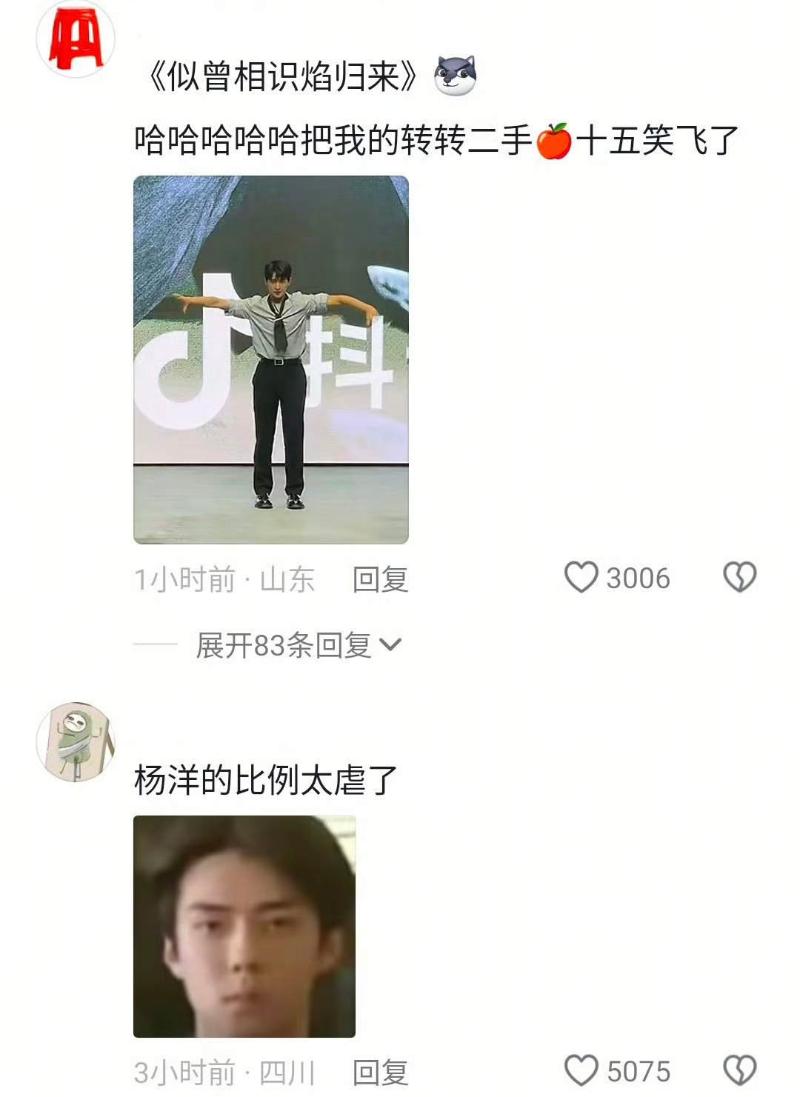 雖然但是,也有網友認為是造型師的鍋,畢竟來看看,楊洋換了套造型,比例明明就很好了啊!!