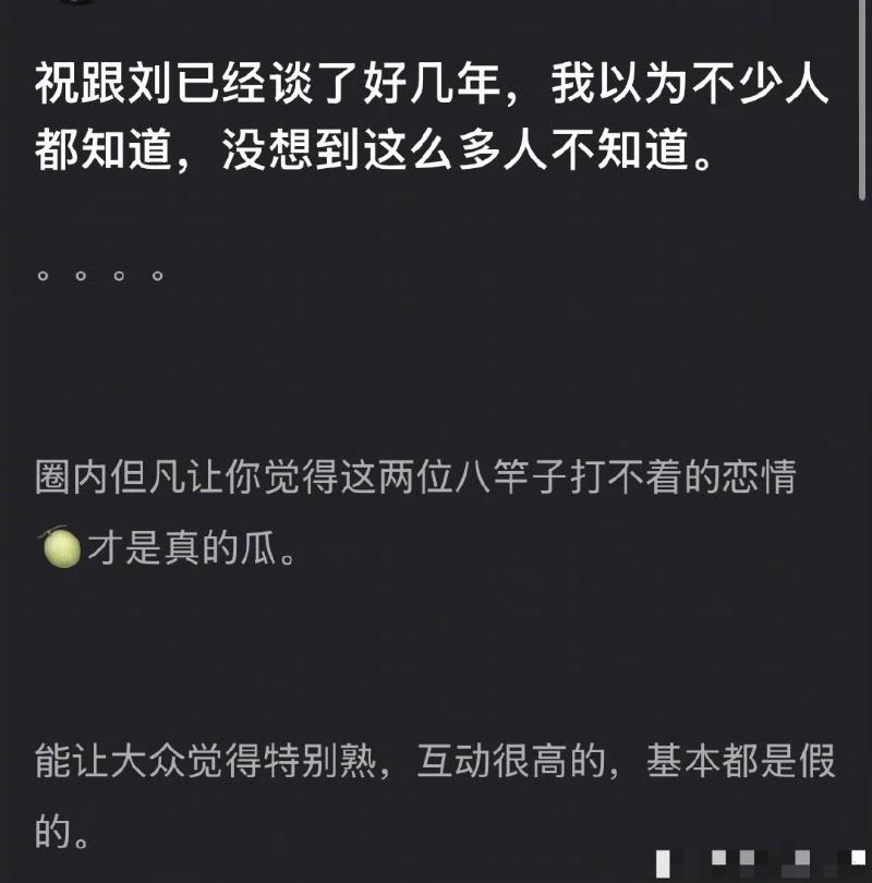 根據她的爆料,祝緒丹和劉宇寧早就戀愛ing!據稱,兩人是在拍攝《書卷一夢》時在一起,順便還曝了之前劉宇寧方有對象,目前兩人還在一起。