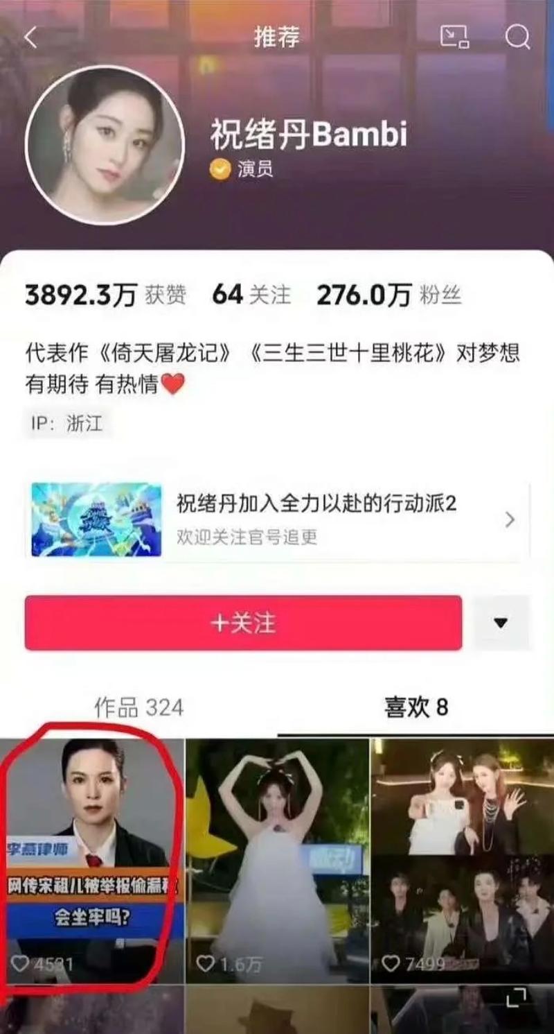 在和劉宇寧合作《折腰》的宋祖兒爆出偷漏稅,祝緒丹被發現點讚了相關報道👇