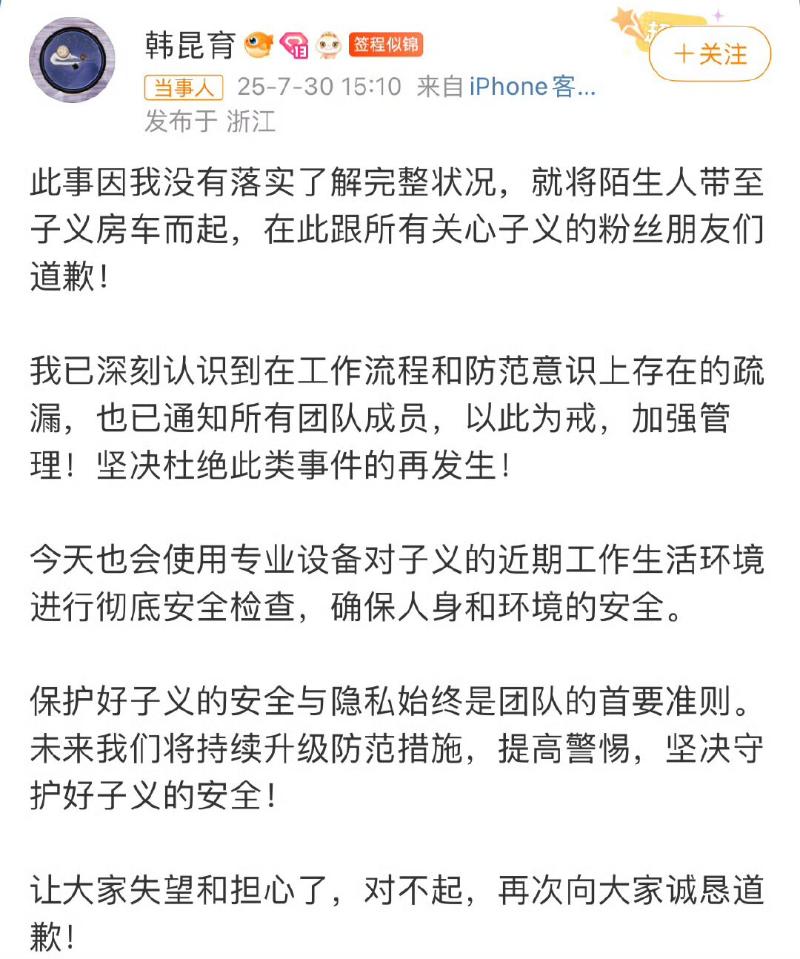 沒想到在引起爭議之後,出來道歉的居然是…孟子義經紀人!!!是噠,原來這位粉絲是在經紀人的允許下,才得以進去孟子義的房車!