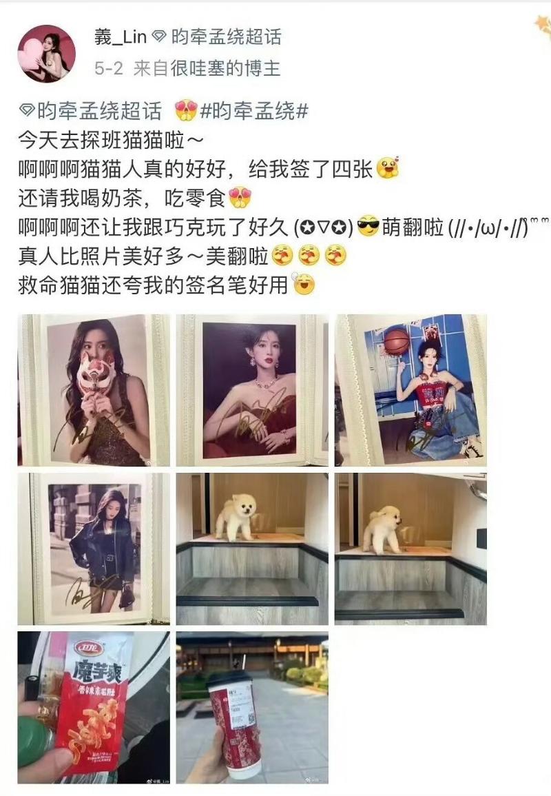 來看看,這位CP粉發帖分享了自己在五一假期時,去劇組見孟子義的照片,並公開了自己在她房車內,抱著其寵物「巧克力」的照片👇