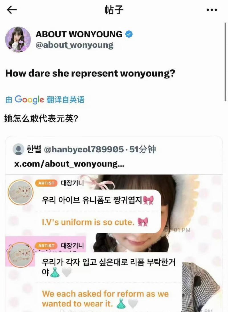 另外,也有粉絲整理了IVE近期參加校慶的造型對比,表示從每次成員們穿的款式變化,可以看得出不外就是斜肩款、掛脖抹胸款、斜跨寬鬆款,可以看得出不是按成員們喜好而選擇改造,而是Cody設計完,大家輪換著穿,所以Rei這番發言,真的是在給張員瑛倒油👇