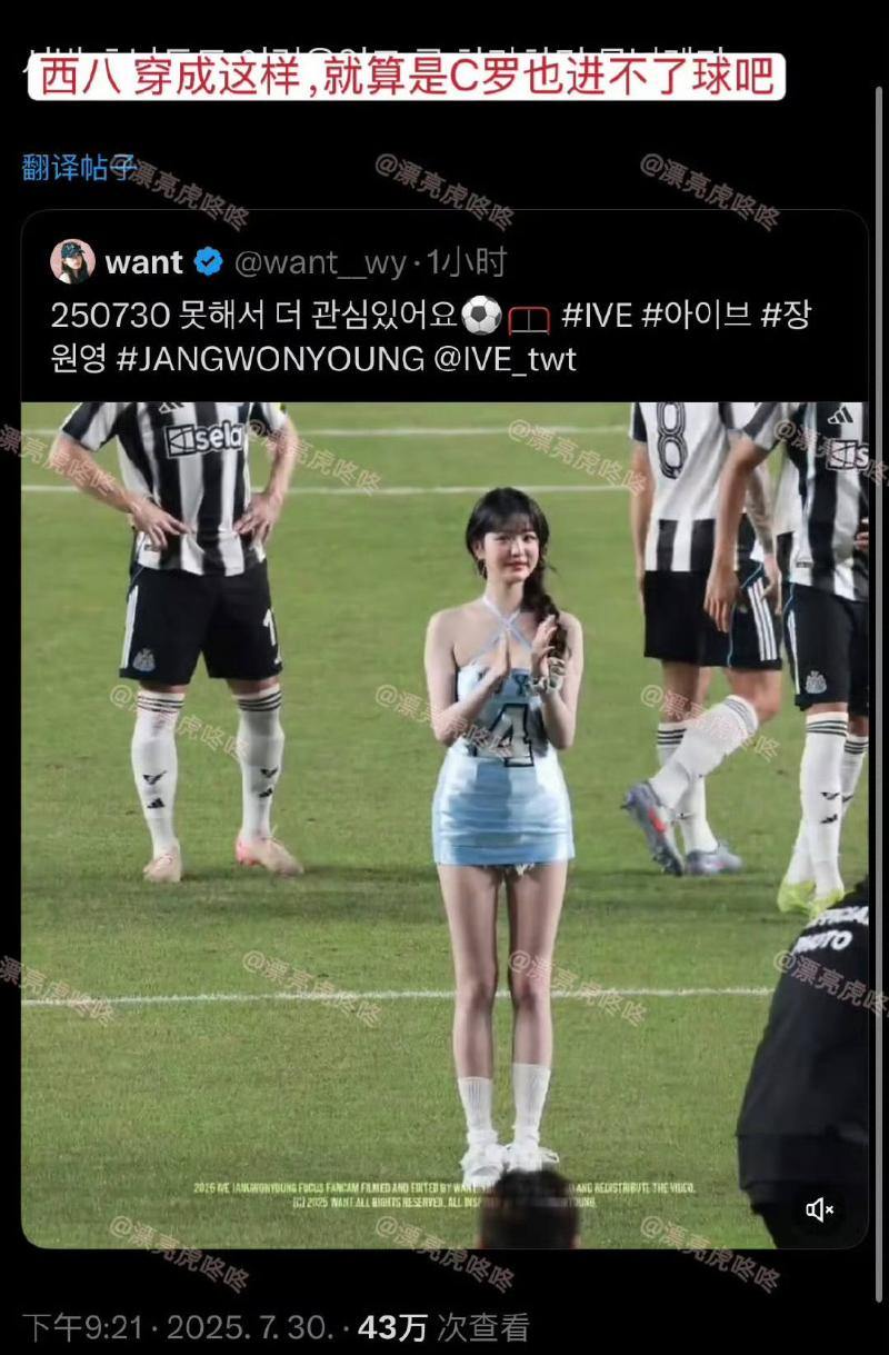 啊咧~這真的不是Cody的問題嗎?是噠,IVE為「2025 Coupang Play系列賽」擔任開球嘉賓,當中張員瑛的改良款球衣一現身就引起話題,不但上演「下衣失蹤」,就連南半球在很明顯,直接引起爭議!