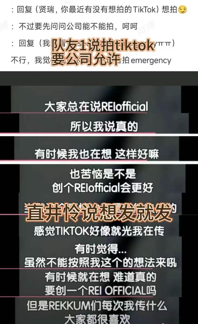 雖然但是,Rei這番話在海外也引起了不少爭議,不少粉絲留言表示Rei不是第一次這麼茶言茶語了,之前成員李瑞曾表示TikTok不是想拍就拍,但瞬間就被Rei發言打臉👇