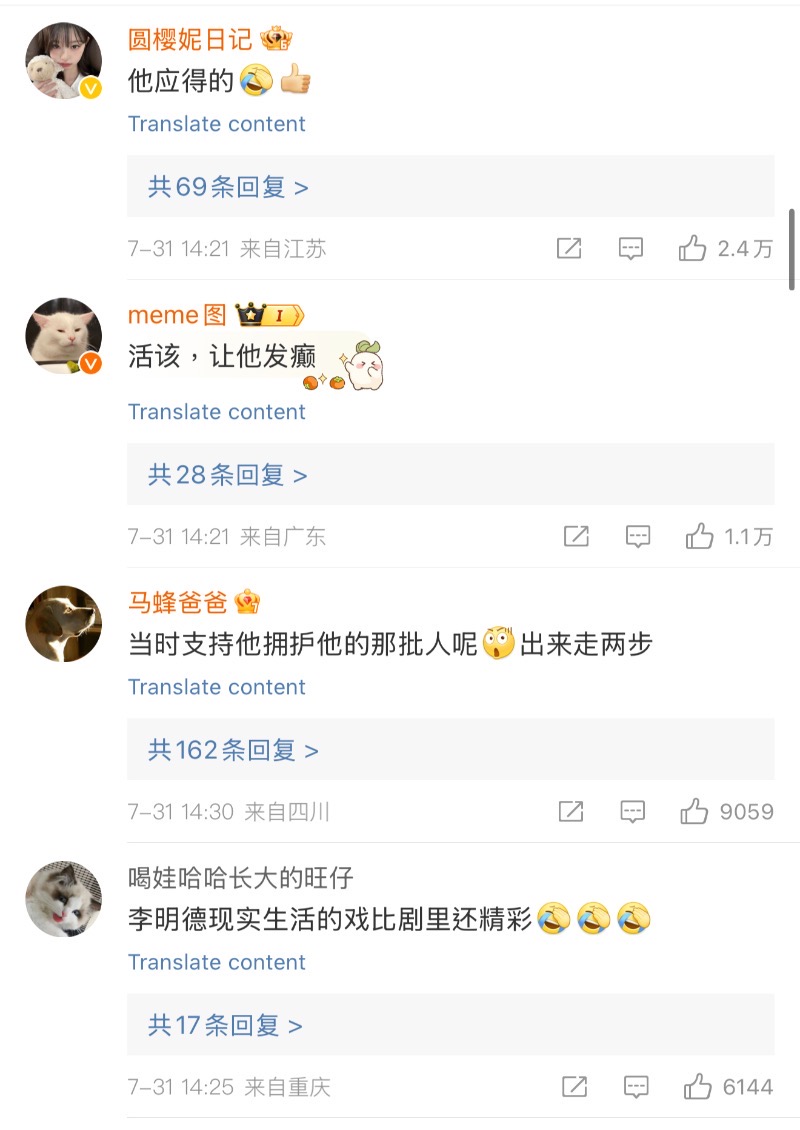 李明德當時被塑造成一個追求公平正義的「鬥士」形象。雖然馬天宇和其他劇組成員,對他的指控進行了回應,指出他的行為包括無故離場、損環酒店財物等,最終導致劇組與他解約,但輿論一面倒支持他👇