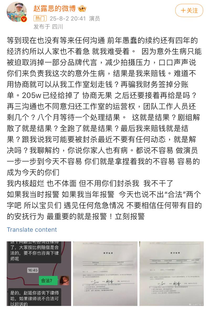雖然被公開喊話,但經紀公司並沒有任何回應,一直到晚間,趙露思再次發帖,這次寫了長文控訴經紀公司下列罪行: