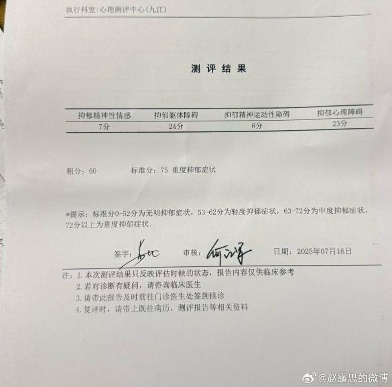 此外,她也公開了自己的診斷書,顯示她重度抑郁和焦慮👇