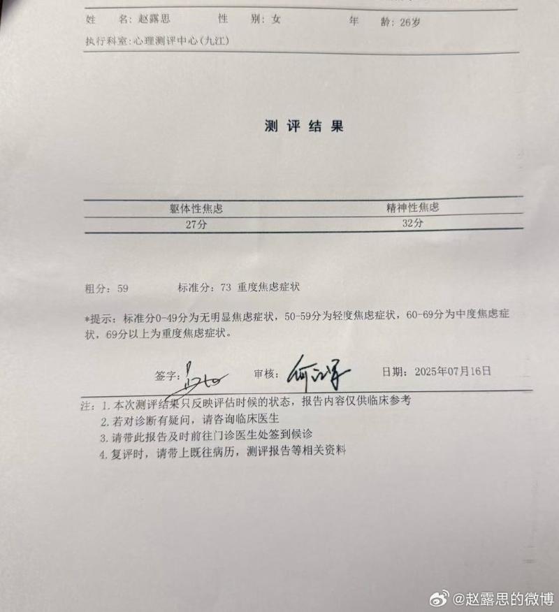 此外,她也公開了自己的診斷書,顯示她重度抑郁和焦慮👇