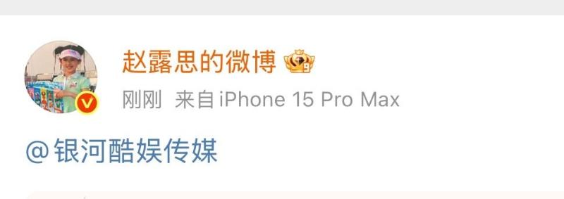 而在2號這天,趙露思突然發了一篇帖文,什麼也沒有寫,僅艾特了其經紀公司「銀河酷娛傳媒」