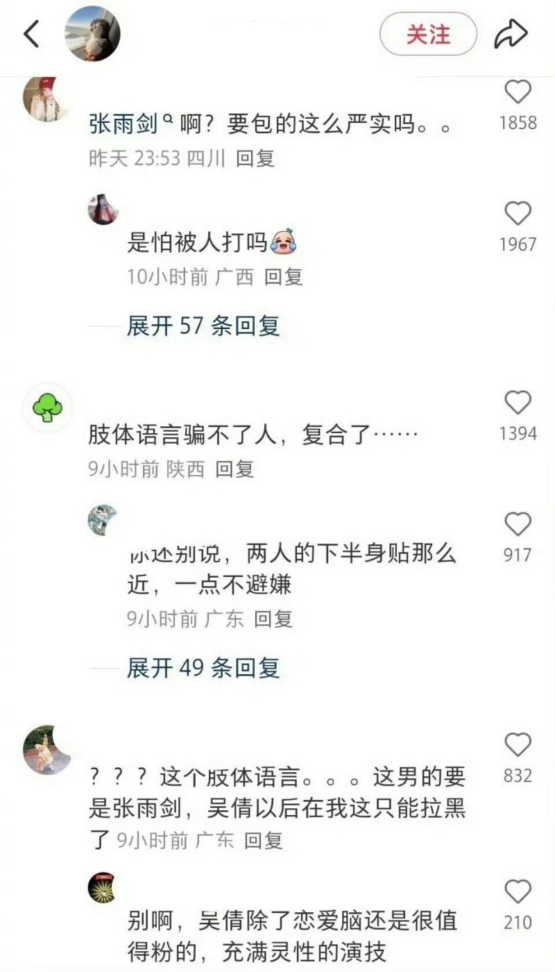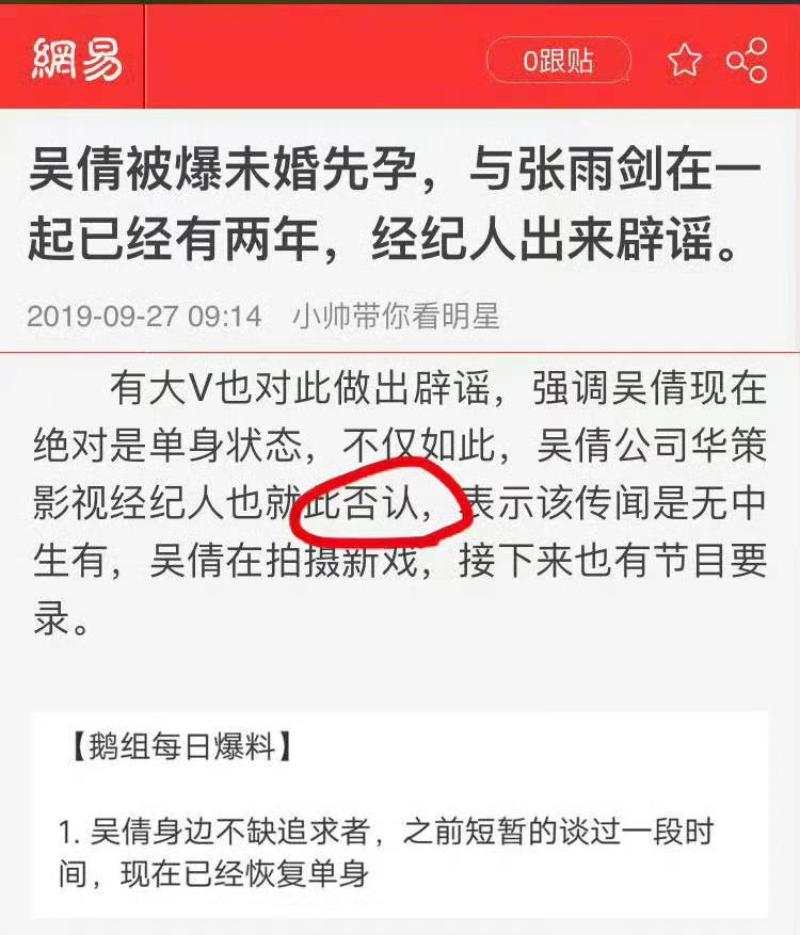 這裡科普一下,吳倩、張雨劍之前一直被傳戀愛,還說吳倩被偶遇產檢,但公司多次出來闢謠👇