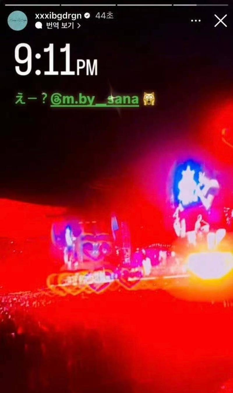 當時G-Dragon分享了自己出席Coldplay在韓演唱會的現場,但在顯示帖文中卻標記了TWICE成員Sana,引發了熱議後刪除。