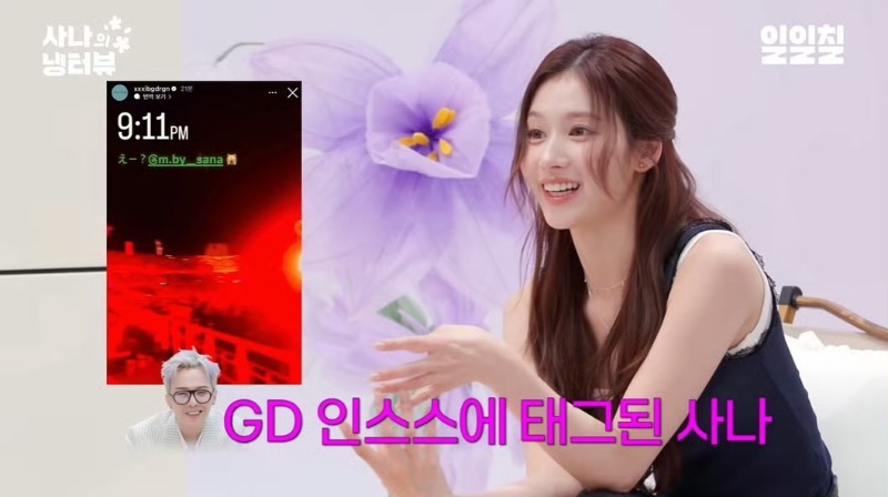 沒想到Sana在時隔數月之後,在《Sana的冰箱訪談》最後一期節目中也回顧了與G-Dragon(權志龍)和Dex共同錄制節目的趣事,透露現場氣氛是「緊急集合卻異常默契。」