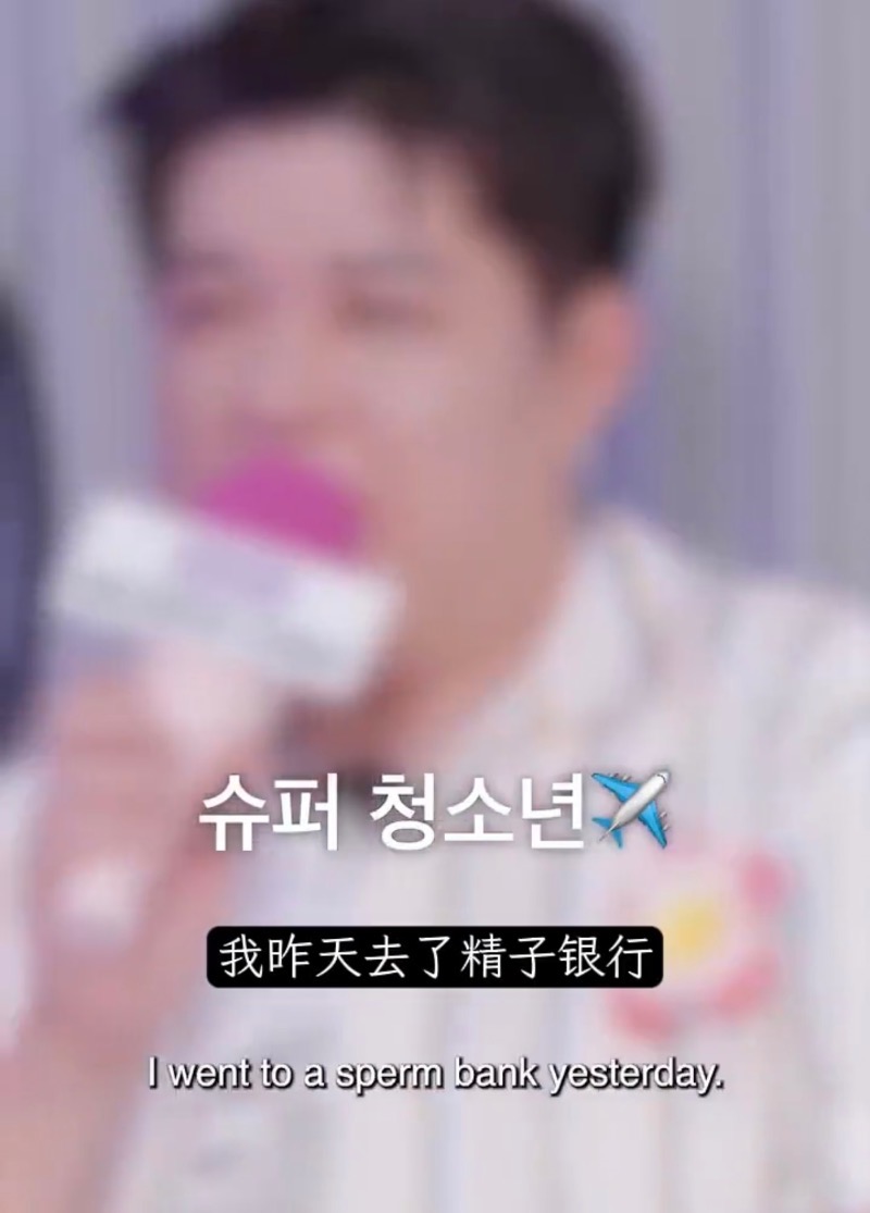 結果另一名成員神童(申東熙)的回應引起了爭議,因為他突然接話:「我昨天去了精子銀行」,引發全場尷尬。