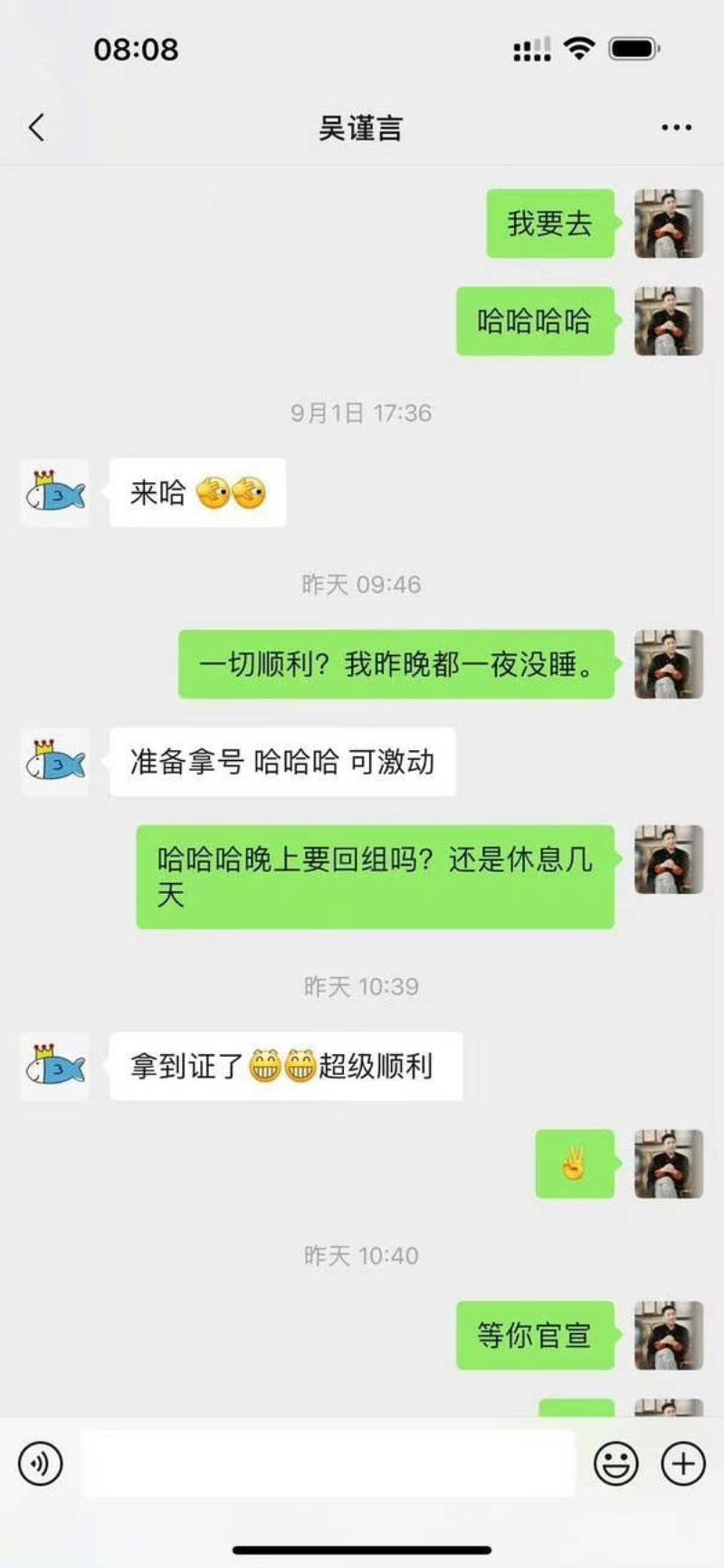 沒想到就是這麼平和的,同意了旗下的女藝人結婚啊!事實上,在吳謹言公開婚訊之後,于正也曾公開兩人的聊天截圖,表示自己也是前一天才知道她準備去登記!現在看來,似乎不假呢~