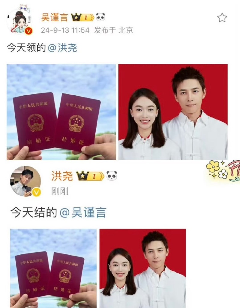 事實上,兩人早在2019年合作《延禧攻略》之後,就頻頻傳出緋聞,當時男方曾上傳兩人的親密合照後又秒刪,2020年又被爆出同居。儘管如此,兩人始終未公開承認戀情,直到2024年9月13日才正式公佈婚訊。