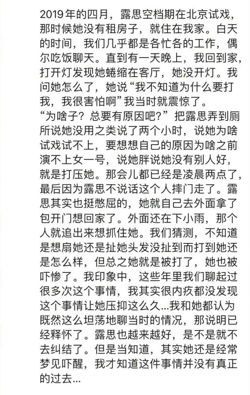 這裡科普一下,去年12月底趙露思還有曾發長文,指控趙露思2019年在北京試戲時,因為沒試上女一號被公司毆打,還被叫到廁所進行辱罵,她經常夢見嚇醒。