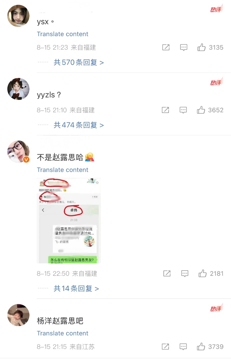 網友們繼續發揮福爾摩斯精神,根據「甜系頂流」、「古偶斷層」、「處境不如從前」等關鍵詞,將猜測對象聚焦在趙露思身上,而和她密戀的當紅男星,曾合作《且試天下》的楊洋被指完全符合!