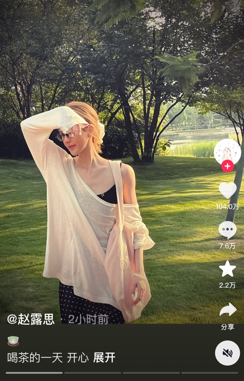 趙露思雖然登陸微博,但卻跑去抖音發了日常照,耐人尋味的是,她的配文是:「🍵 喝茶的一天,開心」