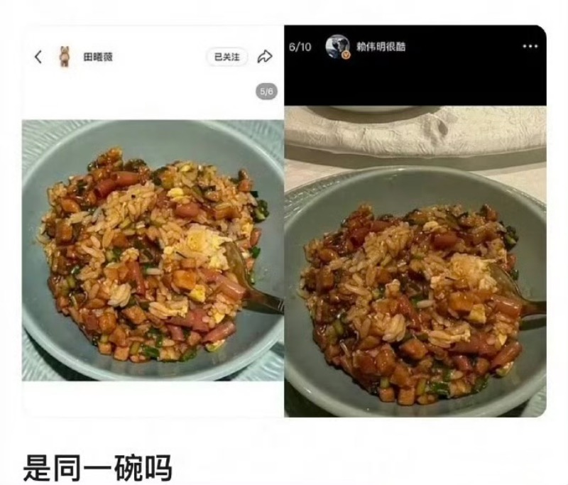 對比一下,被質疑是同一碗,引發了戀情爭議👇
