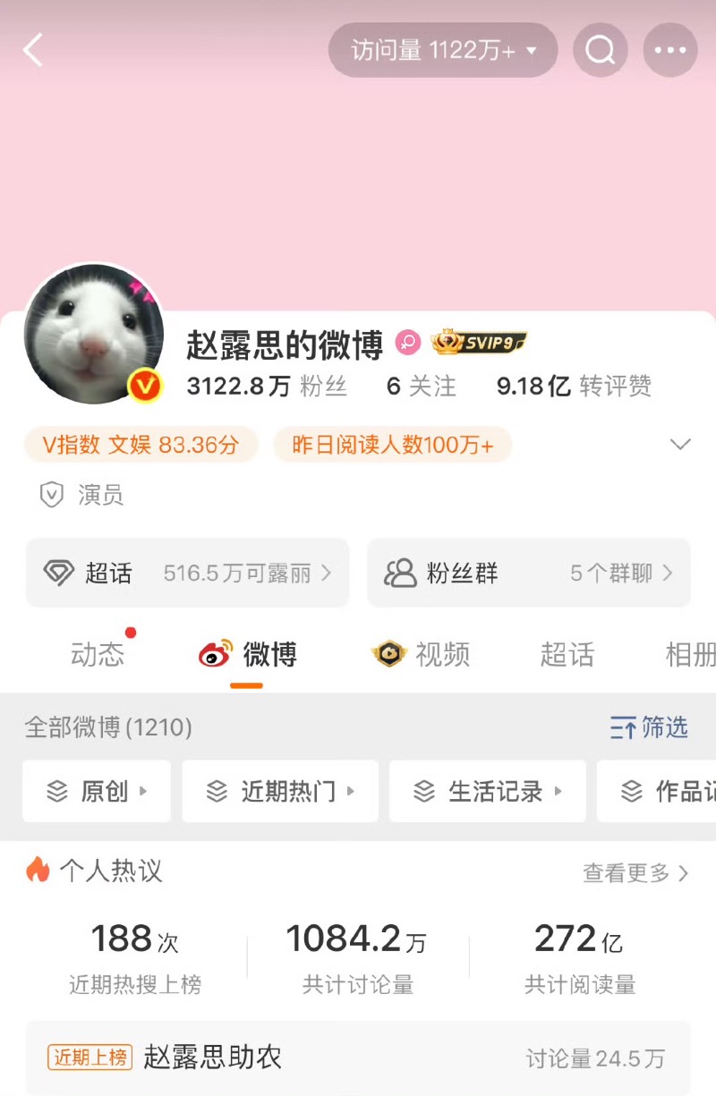 趙露思微博號目前擁有超過3000萬的粉絲,絕對是微博VIP👇