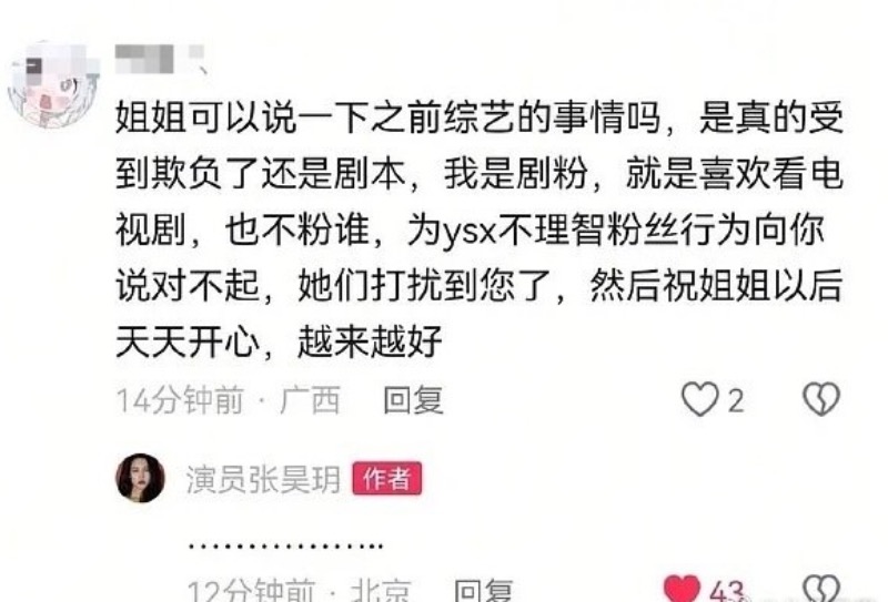 另外,張昊玥這次也回複點贊了一些評論👇