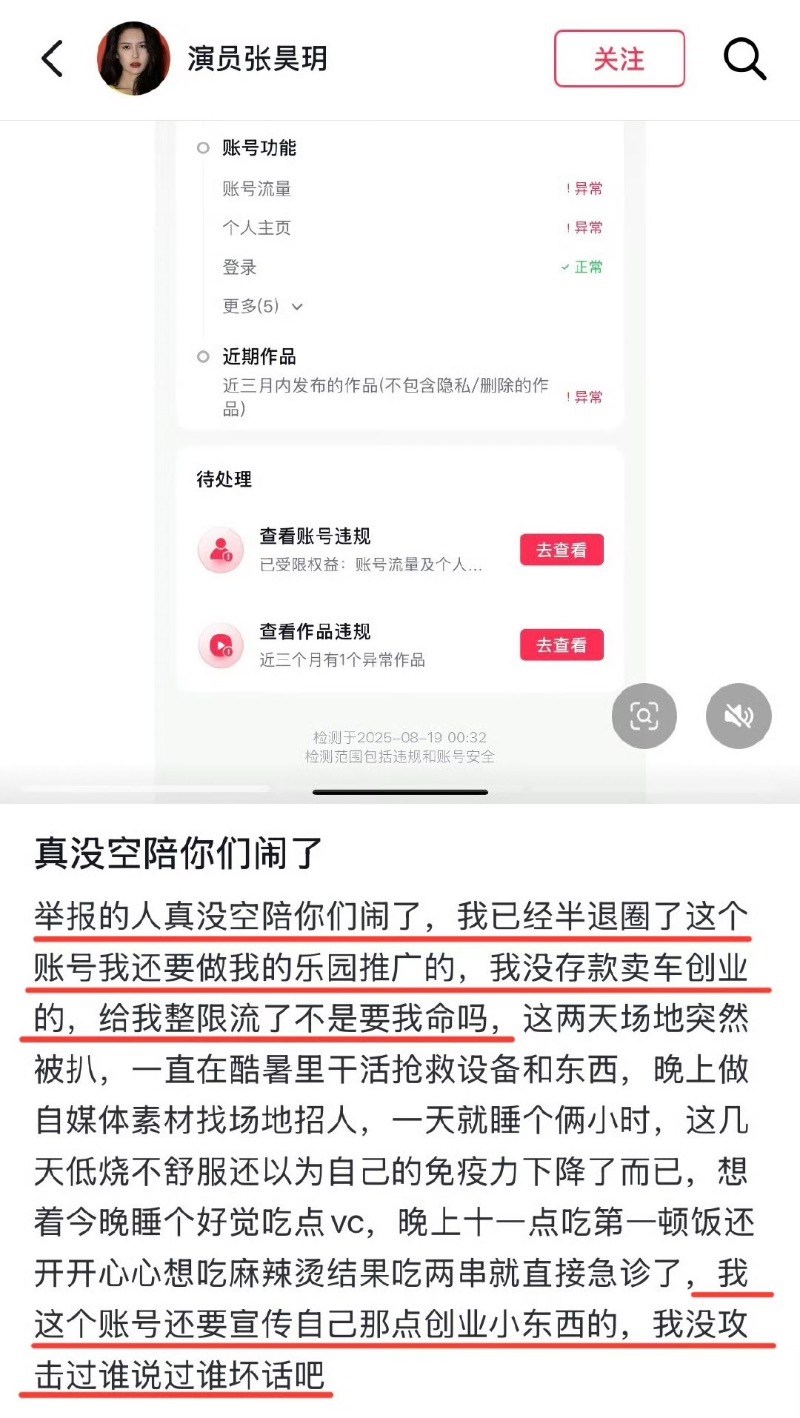 沒想到張昊玥的賬號直接被舉報了,氣得她發帖讓網友放過她這個已經半退圈的小糊糊👇