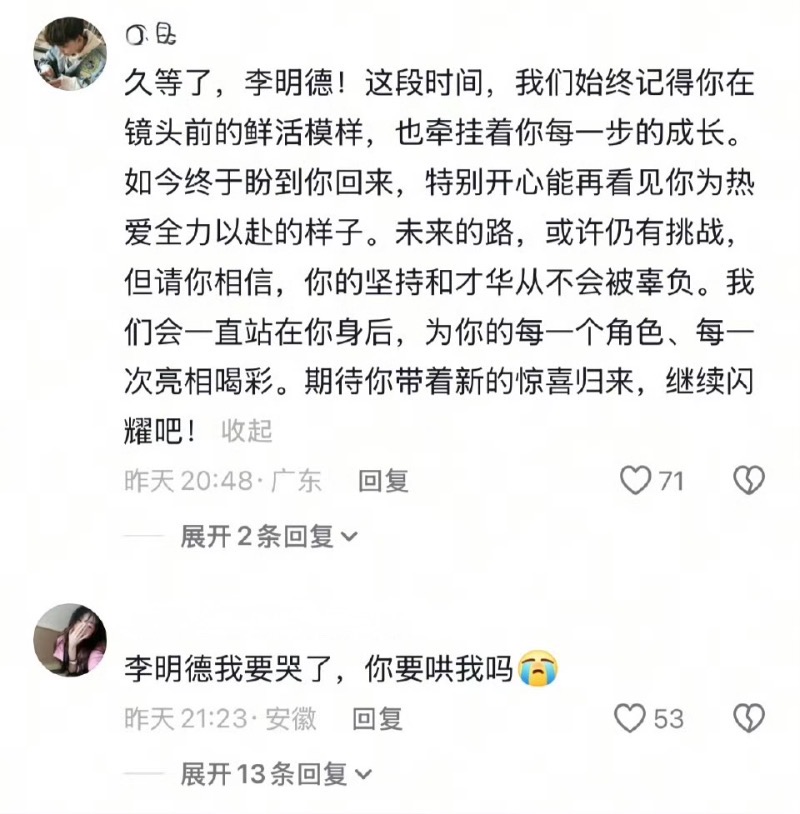 曾指控馬天宇霸凌!李明德刑滿釋放!經紀人發文喊話! 星聞 By 歐巴是我的 On Aug 21, 2025 Share 啊咧~李明德出來了!是噠!曾公開指控馬天宇在《三人行》劇組耍大牌、霸凌的李明德,因為醉酒砸了別人的車,事後拒絕按照協議賠償,結果被警方刑事拘留,法院判決其有期徒刑6個月,民事賠償20萬元(人民幣)。 而在20號晚上,其經紀人發文透露,表示一切都好,抱歉讓大家擔心了,並喊話粉絲們「以後的路一起走。」 而評論區都是粉絲留言支持👇 而李明德也被發現,多次上線疑似在觀望輿論風向👇 消息曝光之後,不少網友質疑,都犯了刑事案,居然還能復出嗎? 圖來源:部分照片取自網絡,若侵權請告知 Share