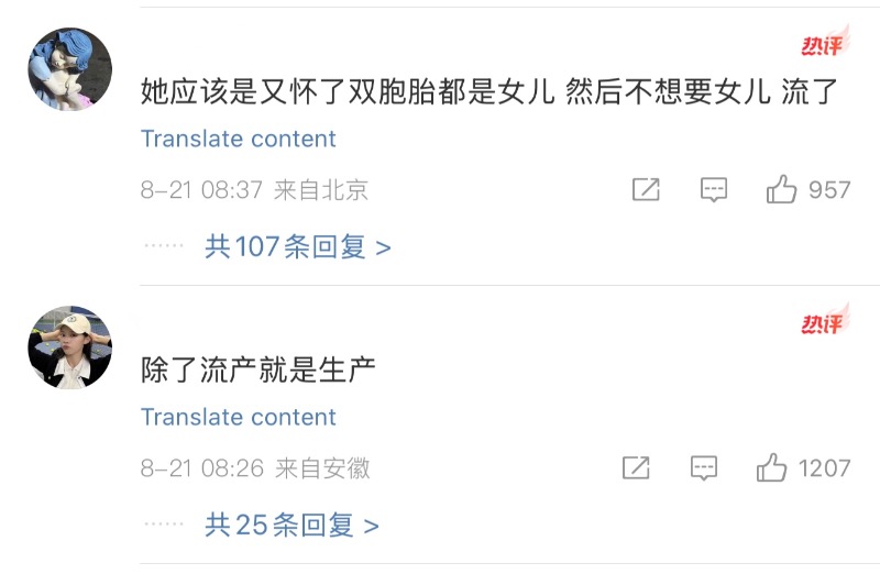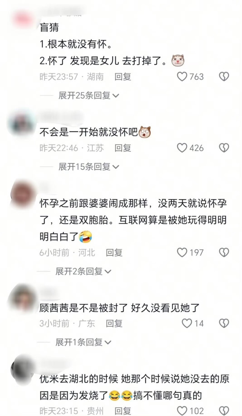 這段消息曝光之後,引來了不少爭議,有些質疑她或許是得知三胎又是女兒,所以選擇人工流產;也有的質疑從一開始就沒懷孕👇