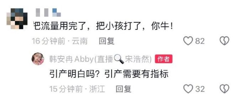 韓安冉在評論區也一一回應,表示自己是引產,需要達到一定指標才可以做👇