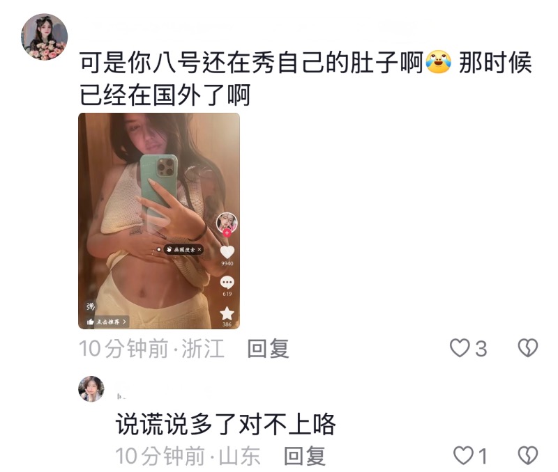 網友質疑在旅遊期間,韓安冉還在不斷用孕肚說謊👇