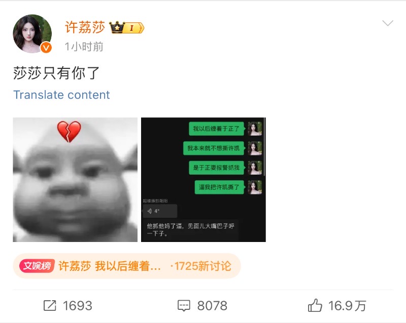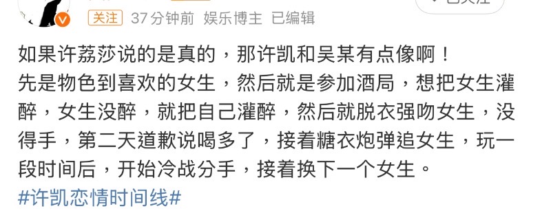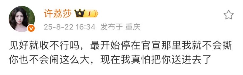 雖然但是,許荔莎還發了一則微博喊話許凱,表示讓他見好就收,自己真怕把他送進去了⋯