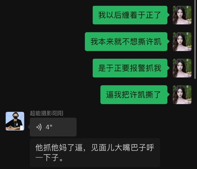 原因大概是都是于正在前線和她對線,還說她得不到許凱就要污衊他👇