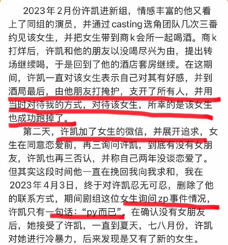 這兩個女孩之後都成為了他女友,但許凱依然在外面不斷劈腿,之後冷暴力分手👇