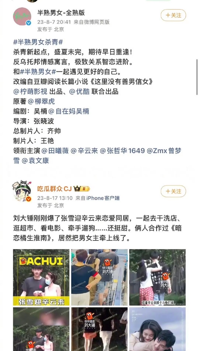 和辛雲來合作《半熟男女》剛殺青,男主辛雲來就被爆出和張雪迎同居戀情👇