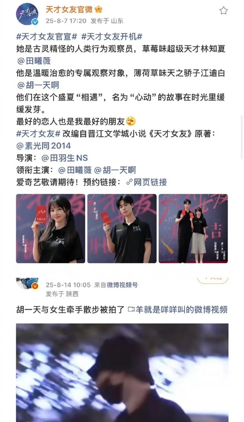 最慘的是,和胡一天合作《天才女友》剛開拍,胡一天約會就被拍⋯