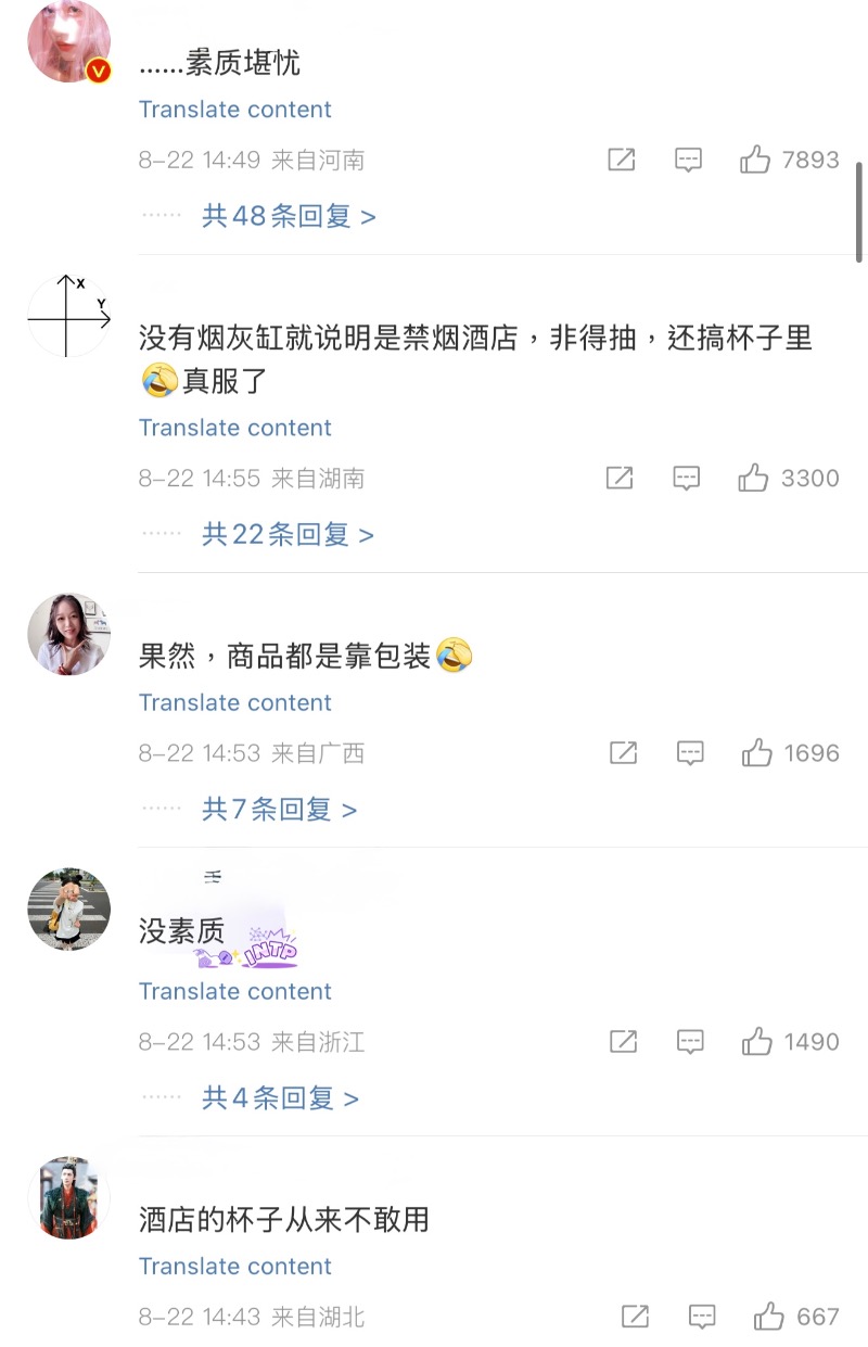 評論區網友沒提供煙灰缸就表示是禁煙酒店,直接被炮轟沒素質!