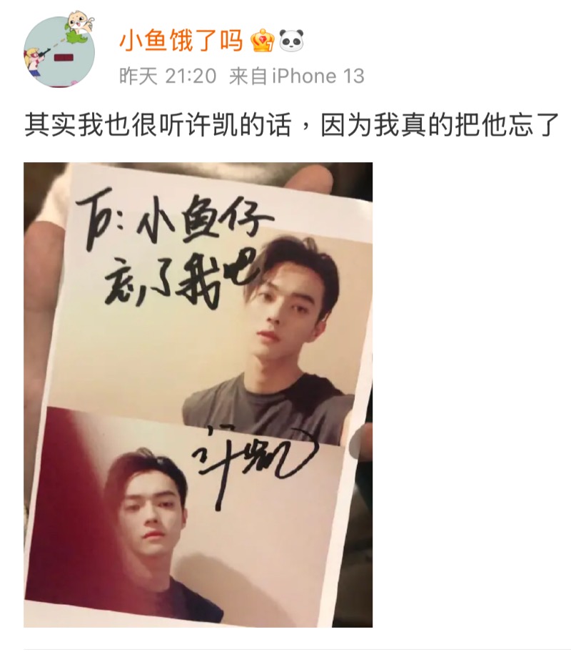 這次許凱又因為私生活爆了熱搜,她繼續倒油表示許凱曾讓自己早點忘了他,她也表示自己很聽話,早就把許凱忘記了!