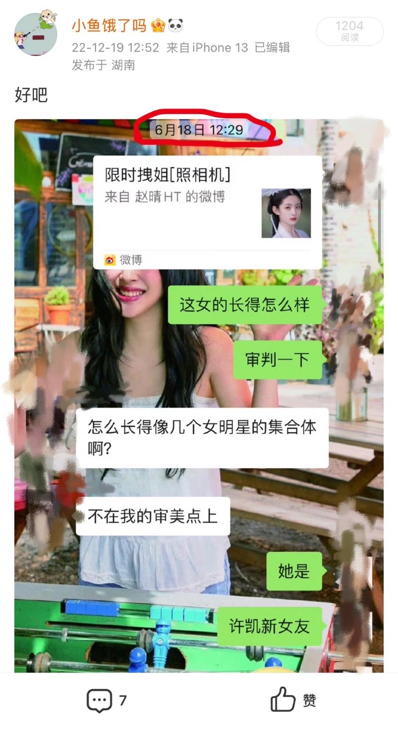 事實上,在2022年許凱和趙晴被拍時,這位老粉就上過一次熱搜,因為當時她曬出了被拍前半年的聊天截圖,當時粉絲間就知道趙晴是許凱新女友👇