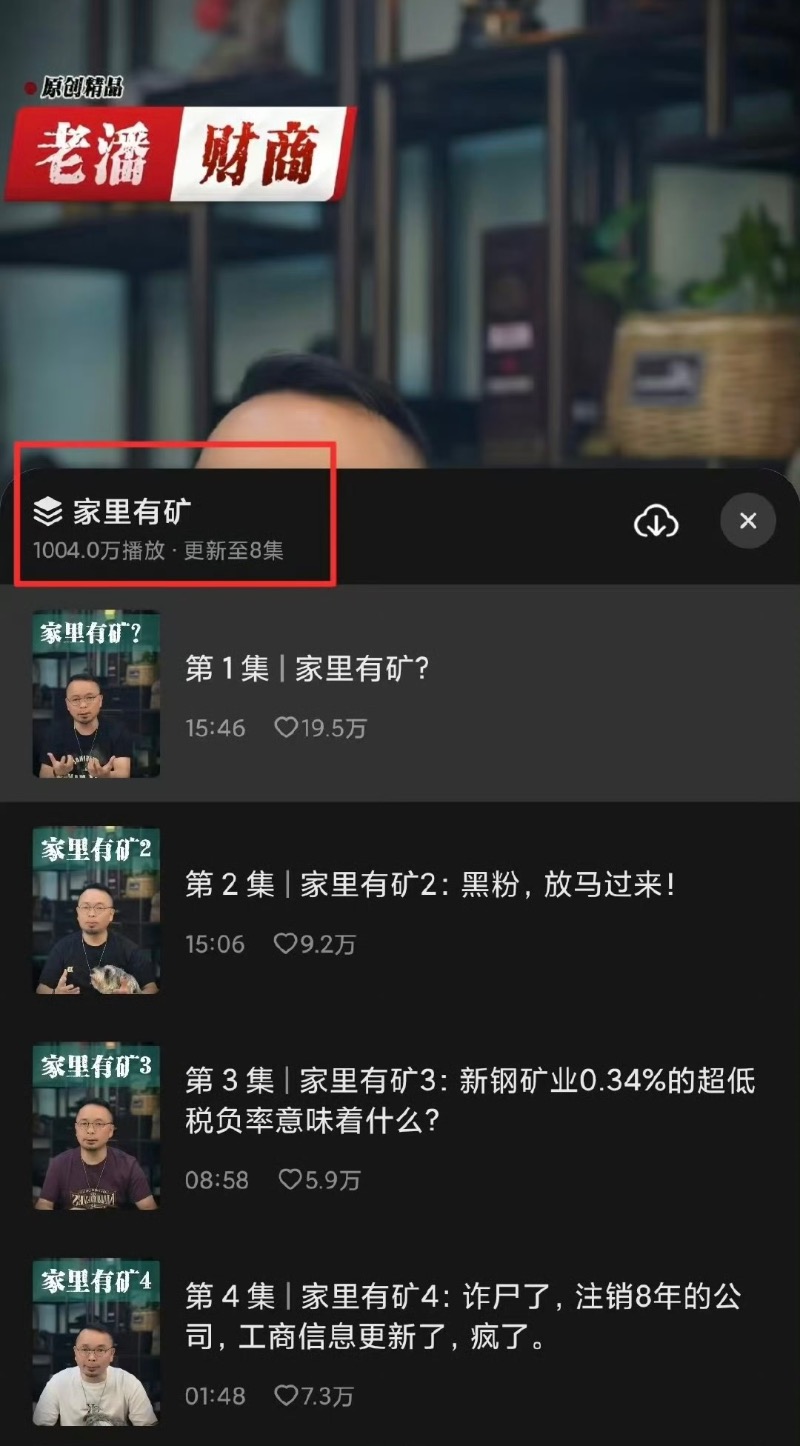 到底這是什麼搜尋詞啊?這裡科普一下,抖音財經博主「老潘財商」從5月起,連續發佈了8支《家裏有礦》系列視頻,通過分析上市公司財報、工商登記信息及裁判文書,對虞書欣父親公司提出質疑。